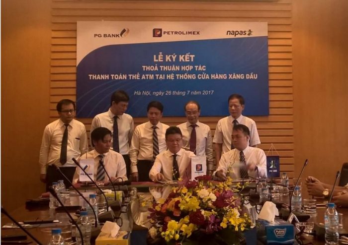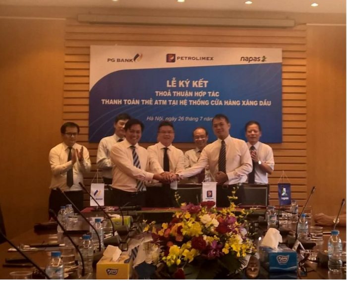 Tập đoàn Xăng dầu Việt Nam (Petrolimex), CTCP Thanh toán Quốc gia Việt Nam (NAPAS) và PG Bank đã ký kết Thỏa thuận hợp tác và công bố kết nối thành công dịch vụ thanh toán bằng Thẻ ATM qua hệ thống POS của PG Bank tại hệ thống cửa hàng xăng dầu Petrolimex.