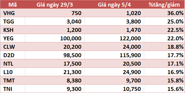 10 cổ phiếu tăng/giảm mạnh nhất tuần: Nhiều mã tăng trên 30%