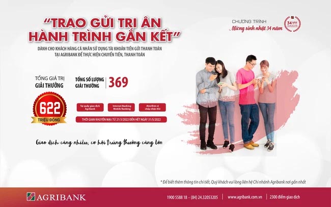 Agribank bung chương trình khuyến mãi mừng sinh nhật 34 năm