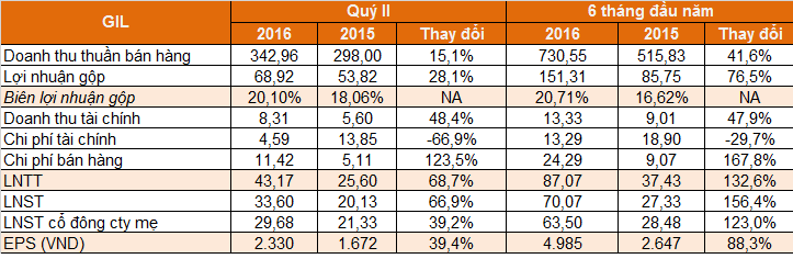 Giải trình về kết quả kinh doanh tăng vọt trong kỳ, GIL nói ngắn gọn đó là do quý 2 năm nay doanh thu tăng và có thay đổi cơ cấu mặt hàng xuất bán trong kỳ.