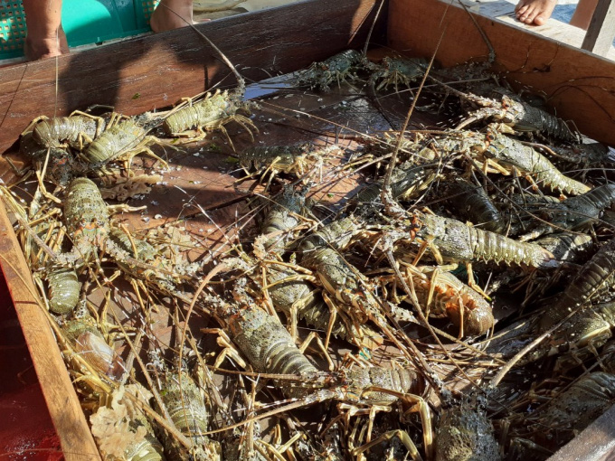 Tôm hùm được thu mua tại xã Cam Bình, TP Cam Ranh, tỉnh Khánh Hòa. Ảnh Văn Hậu.