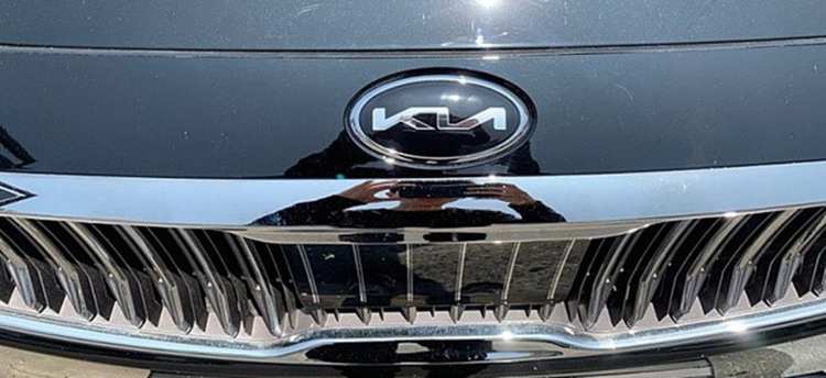 | Ảnh thực tế logo mới xuất hiện trên một mẫu xe mới của Kia |