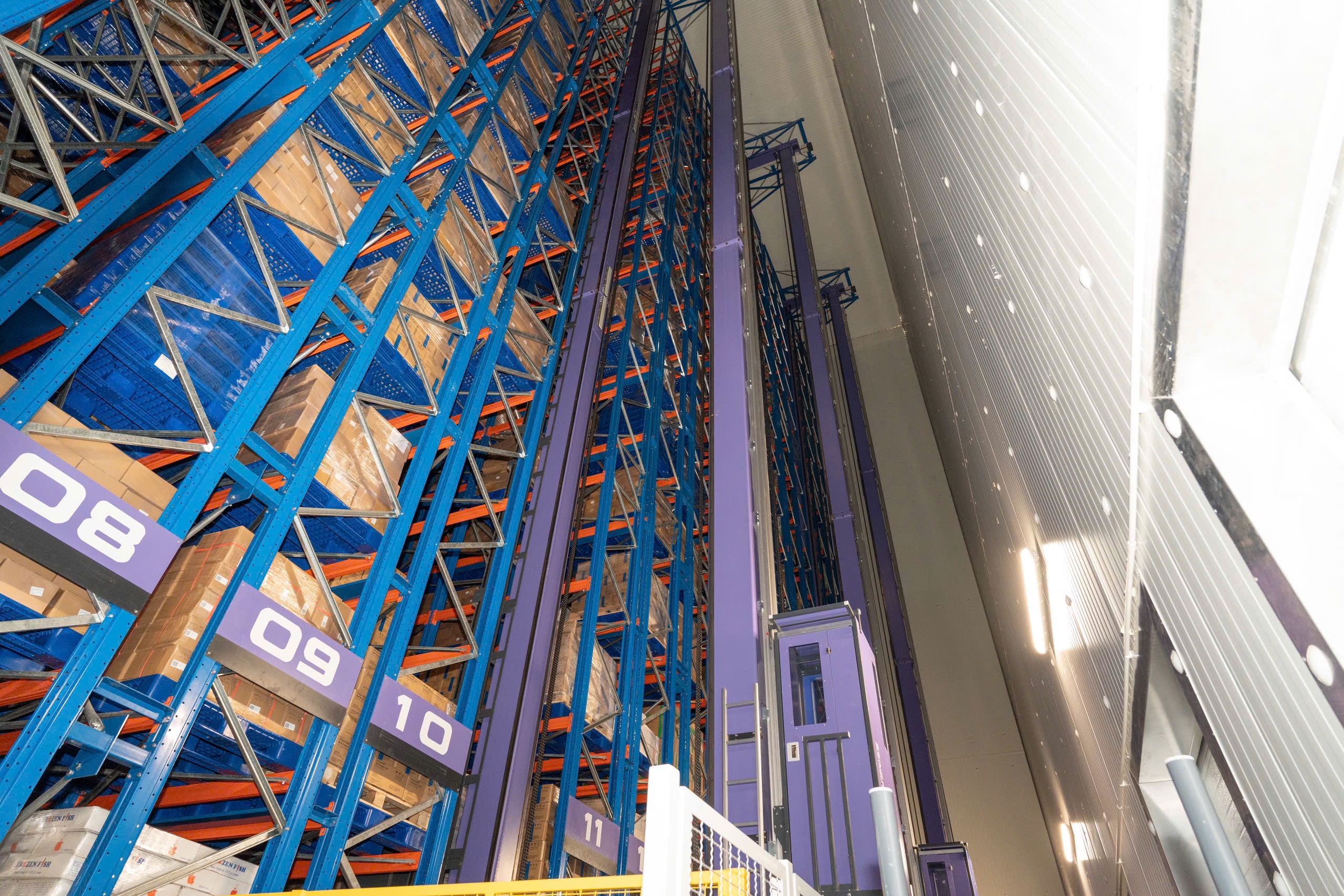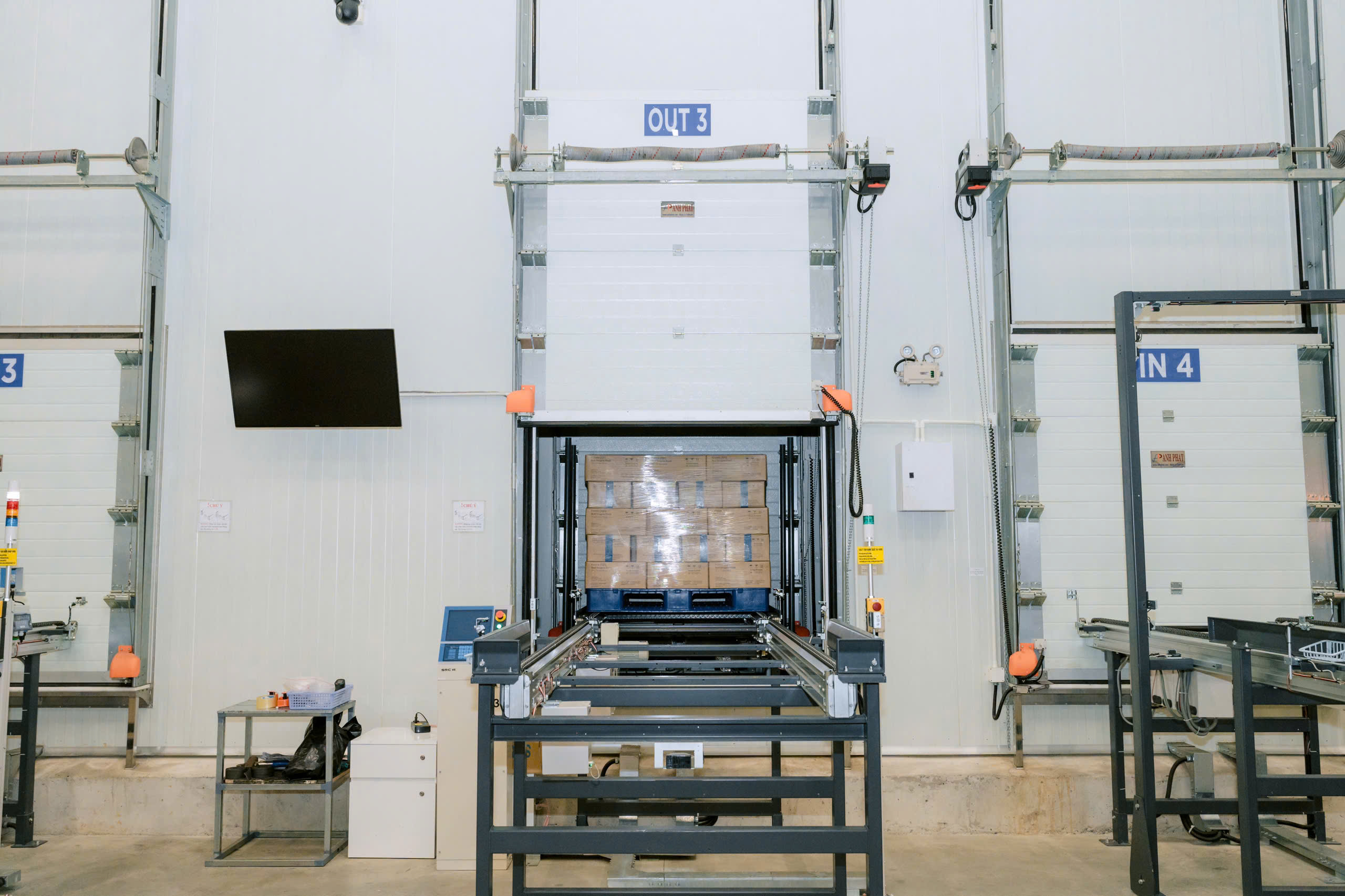 Hệ thống ASRS với cửa nạp nhỏ, phòng tách ẩm hai lớp và băng tải tự động giúp giảm lượng không khí nóng – ẩm lọt vào phòng lạnh, từ đó giảm đóng băng, giảm tải lạnh và tiết kiệm điện.