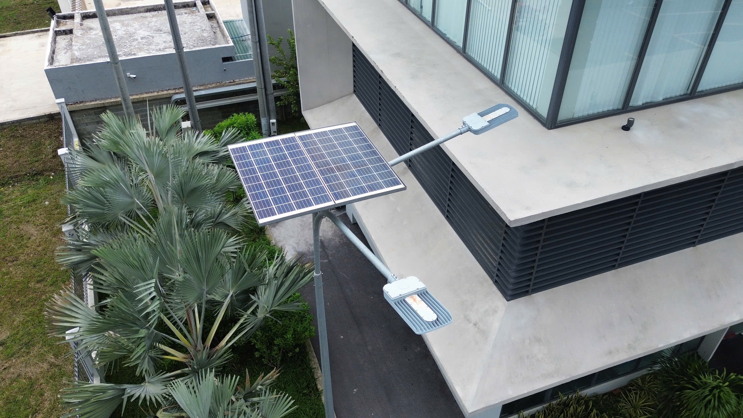 Tất cả khu vực ngoài trời, hệ thống nước và xử lý chất thải đều được thiết kế theo chuẩn công trình xanh. Cụ thể, đèn ngoài trời dùng 100% năng lượng mặt trời, không tiêu thụđiện lưới; Thiết bị nước 3,4 lít/phút, tự động ngắt sau 6 giây, giảm lãng phí; Hệ thống xử lý nước thải 40m³/ngày, đạt chuẩn Loại A, cao hơn quy định KCN.