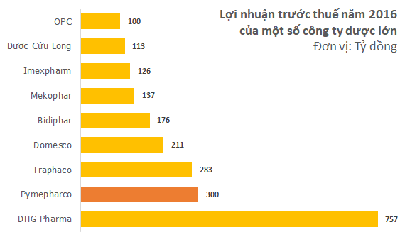 Với kết quả kinh doanh như hiện nay, Pymepharco chỉ xếp sau một mình Dược Hậu Giang (DHG) trên sàn HOSE nếu tính theo chỉ tiêu lợi nhuận.