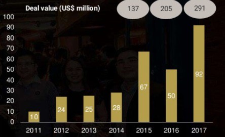 Số thương vụ huy động vốn thành công năm 2017 của start-up Việt gần gấp đôi năm 2016.