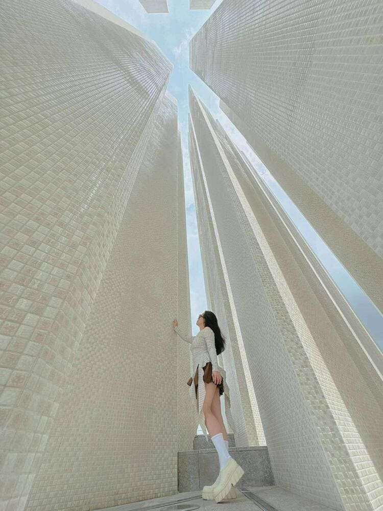 Trào lưu check-in giữa lòng công trình, nơi các cột trụ xếp lớp tạo hiệu ứng ánh sáng và bóng đổ kỳ ảo, khiến mỗi khung hình đều trở thành tác phẩm nghệ thuật. Nhiều nhóm bạn trẻ còn tái hiện các trend quay video từng gây sốt, biến quảng trường thành “studio khổng lồ” ngoài trời.