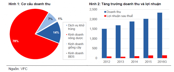 Hiện tại trên thị trường thuốc bảo vệ thực vật Việt Nam, vị thế của VFG chỉ đứng sau Lộc Trời và khá ngang ngửa với Bayer (Đức) với doanh thu gần 1.600 tỉ đồng trong 2015. Đáng chú ý hơn nữa là trong khi Lộc Trời đang có dấu hiệu đi xuống trong 2 năm trở gần đây thì VFG vẫn tăng trưởng đều đặn.