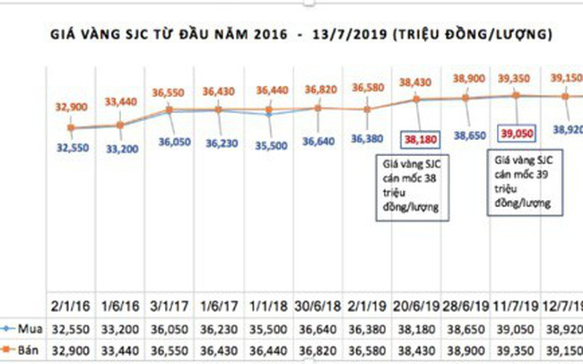 Thoát khỏi vùng “êm ả” của năm 2017 và năm 2018, những ngày cuối tháng 6/2019, giá vàng trong nước bật tăng lên mốc 38 triệu đồng/lượng.
