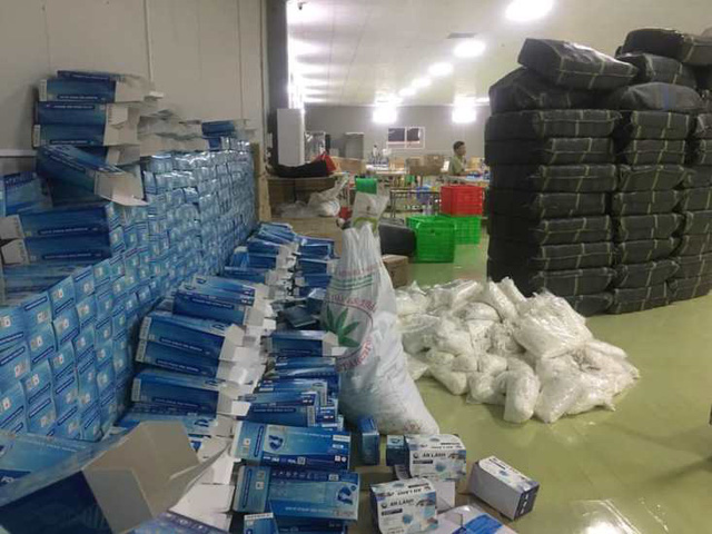 Cơ quan chức năng phát hiện một nhà xưởng 2.000 m2 tại huyện Lương Sơn, Hòa Bình đang sản xuất khẩu trang giả và tái chế găng tay đã qua sử dụng.