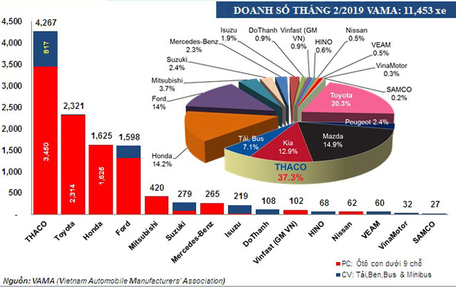 Tháng 2.2019, Thaco Trường Hải tiếp tục đứng đầu thị trường ô tô Việt Nam về doanh số với tổng cộng 4.267 xe bán ra, theo thống kê của Hiệp hội các nhà sản xuất ôtô Việt Nam (VAMA).