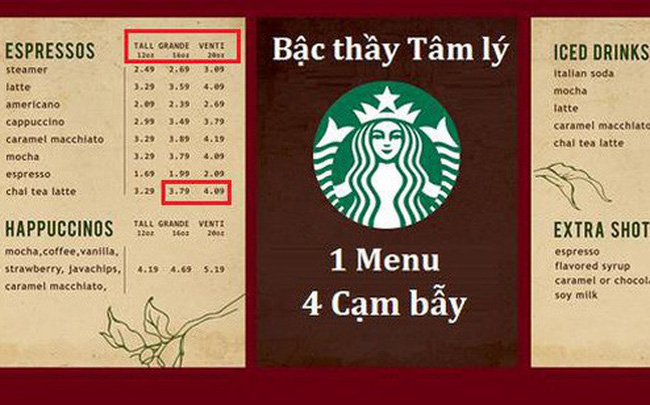 Menu tại Starbucks được đầu tư thiết kế với một mục đích: khiến khách hàng cảm thấy “tâm phục khẩu phục” khi tiêu tiền.