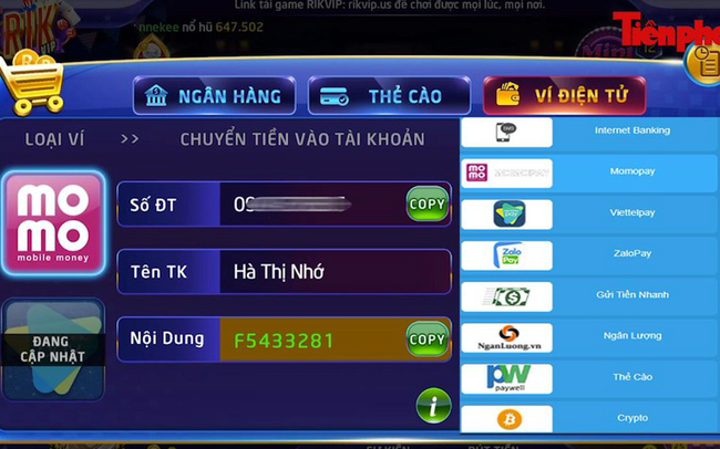 Cờ bạc online nở rộ một phần đến từ việc nộp tiền quá dễ dàng. Con bạc không chỉ chuyển qua thẻ cào điện thoại như trước, mà còn công khai qua các ví điện tử, tiền điện tử, tài khoản ngân hàng. Việc q ...