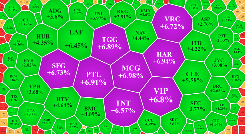 Bộ 3 VinGroup VIC, VHM, VRE đều tăng mạnh giúp sắc xanh thi jtrường được củng cố vững chắc. Trong đó, VIC đóng cửa tăng 6,5% lên 114.500 đồng là cổ phiếu tác động mạnh nhất tới thị trường.