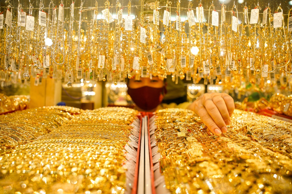 Với việc liên tục vượt đỉnh qua từng phiên, vàng trong nước đang có đà tăng mạnh cùng thế giới, giá bán ra trên thị trường hiện đã cao hơn 8 triệu đồng so với đầu năm.