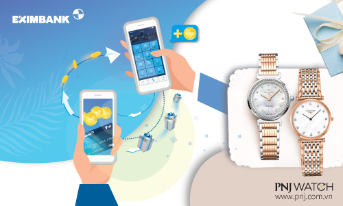 Giao dịch liên ngân hàng từ một triệu đồng trở lên, khách hàng sẽ nhận được một e-voucher mua sắm trị giá một triệu đồng từ PNJ Watch.