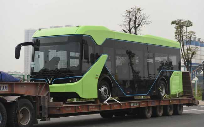 Xe bus điện của VinFast được vận chuyển về khu đô thị VinHomes Ocean Park, cho thấy ngày chúng được vận hành thí điểm không còn xa.