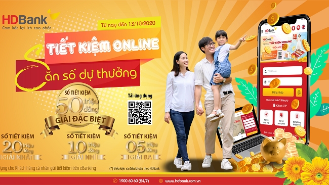 HDBank triển khai chương trình “Tiết kiệm online – Săn số dự thưởng” với cơ hội trúng thưởng cao nhất 50 triệu đồng dành cho khách hàng gửi tiết kiệm online.