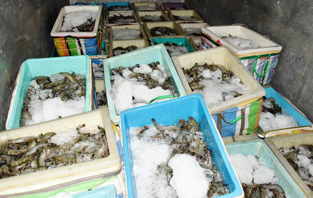 Trên 1,1 tấn tôm chứa tạp chất bị Công an tỉnh Bạc Liêu thu giữ khi đang trên đường vận chuyển đi tiêu thụ.