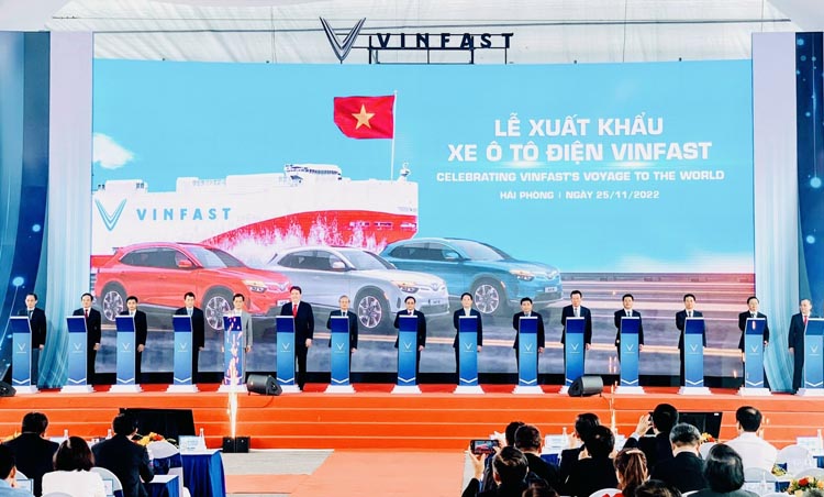 Hải Phòng - Sáng nay (25.11), tại cảng MPC Port tại quận Hải An, Hải Phòng, Thủ tướng Chính phủ Phạm Minh Chính dự lễ xuất khẩu lô xe gồm 999 chiếc ôtô điện VinFast VF8 sang thị trường Mỹ.