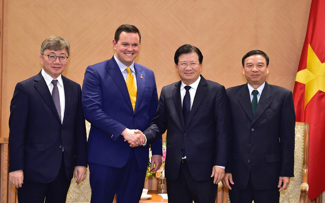 Phó Thủ tướng Trịnh Đình Dũng đã có cuộc gặp với Nhóm các nhà đầu tư Hoa Kỳ-Hàn Quốc quan tâm phát triển dự án điện khí LNG tại Việt Nam (ECV).