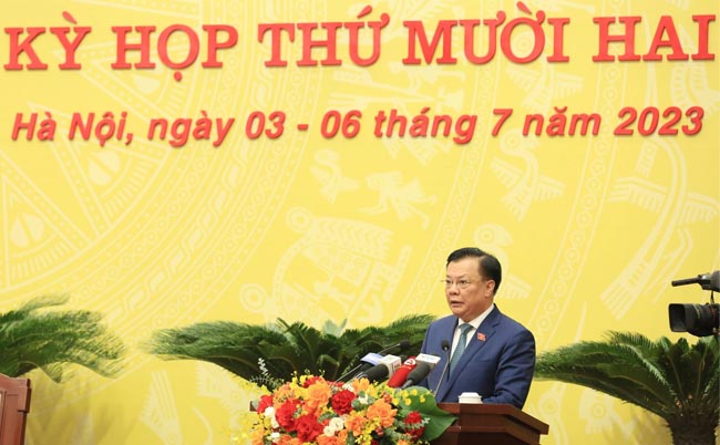 Về các nội dung tại Kỳ họp HĐND TP, Bí thư Thành ủy Hà Nội Đinh Tiến Dũng nhấn mạnh cần đẩy nhanh tiến độ xây dựng các công trình trọng điểm, trong đó có dự án Đường Vành đai 4.