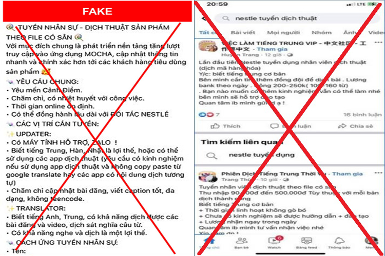 Gần đây, công ty TNHH Nestlé Việt Nam phát hiện có một số thông báo tuyển dụng giả mạo với mục đích lừa đảo, trục lợi cá nhân đang được lan truyền trên mạng xã hội và Internet từ những đối tượng mạo d ...