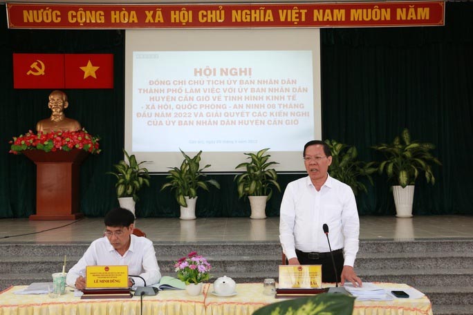 "Ta sốt ruột nhưng không khéo thì sẽ phá nát Cần Giờ, sau này không sửa được"- Chủ tịch UBND TP HCM Phan Văn Mãi phát biểu tại buổi làm việc với huyện Cần Giờ.