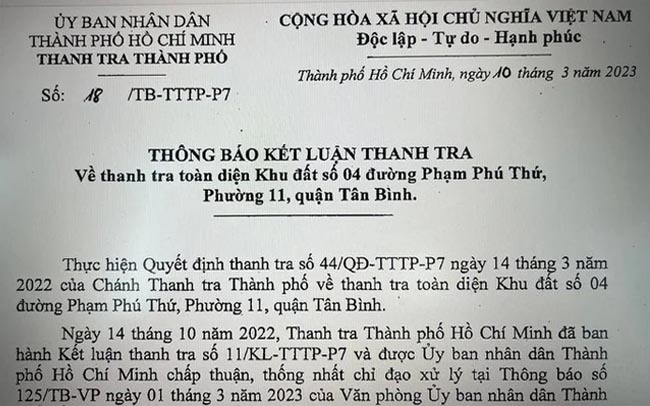 Cục Thuế TP HCM đang chờ quyết định hủy quyết định công nhận kết quả trúng đấu giá quyền sử dụng đất của UBND TP HCM để thu hồi Thông báo tiền sử dụng đất, Thông báo Lệ phí trước bạ.