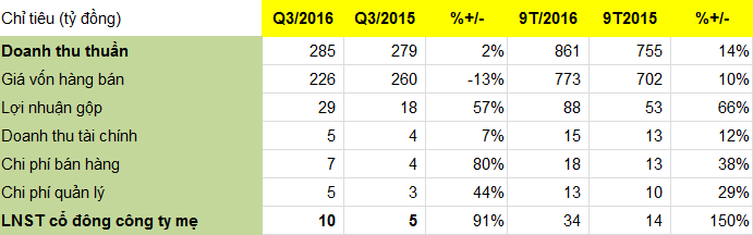 Quý III: Lợi nhuận VKC tăng gấp đôi so với cùng kỳ nhờ giá vốn giảm mạnh Thứ Tư, 26/10/2016 13:04 CH