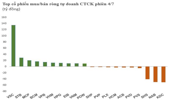 Trong khi khối ngoại bán ròng gần 459 tỷ đồng, tự doanh CTCK tiếp tục mua ròng với giá trị 183 tỷ đồng toàn thị trường.