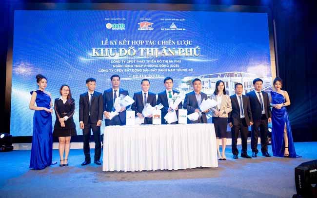 Ngày 12/04/2021, Công ty CP Đầu tư – Phát triển Đô thị Ân Phú phối hợp Công ty CPDV Bất động sản Đất Xanh Nam Trung bộ và Ngân hàng Phương Đông (OCB) tổ chức lễ ký kết hợp tác chiến lược 3 bên về phân ...