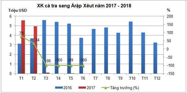 Tính đến hết tháng 6/2019, tổng giá trị xuất khẩu cá tra đạt 961,6 triệu USD, giảm 4,1% so với nửa đầu năm trước.