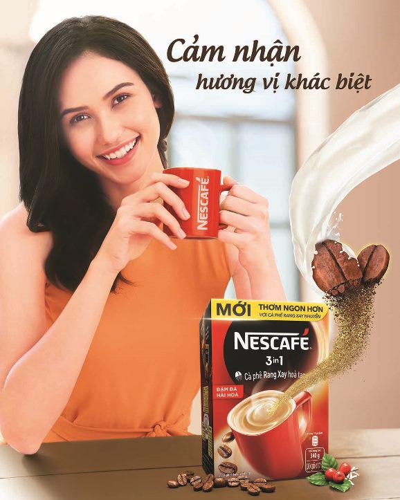 Nescafé 3 in 1 mới bổ sung hạt cà phê rang xay nhuyễn với lớp bọc coffee cr ...