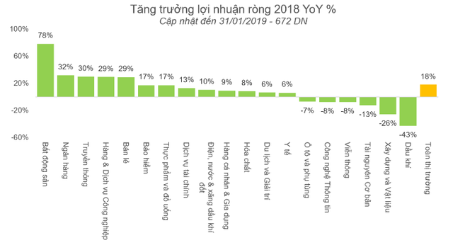 VCB là doanh nghiệp có lợi nhuận cao nhất thị trường với 14.641,5 tỷ đồng. Ngành Dầu khí chỉ đạt tổng lợi nhuận 5.185 tỷ đồng, sụt giảm 43% so với năm 2017.