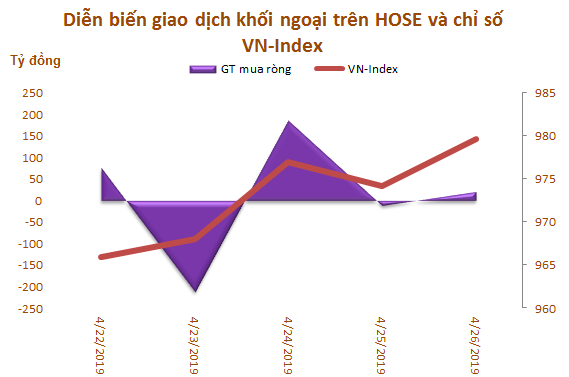 Khối ngoại đã mua ròng khá mạnh với giá trị gần 1.000 tỷ đồng, lực mua tập trung vào VIC (640,4 tỷ đồng), KBC (402 tỷ đồng) và giao dịch chủ yếu qua phương thức thỏa thuận.