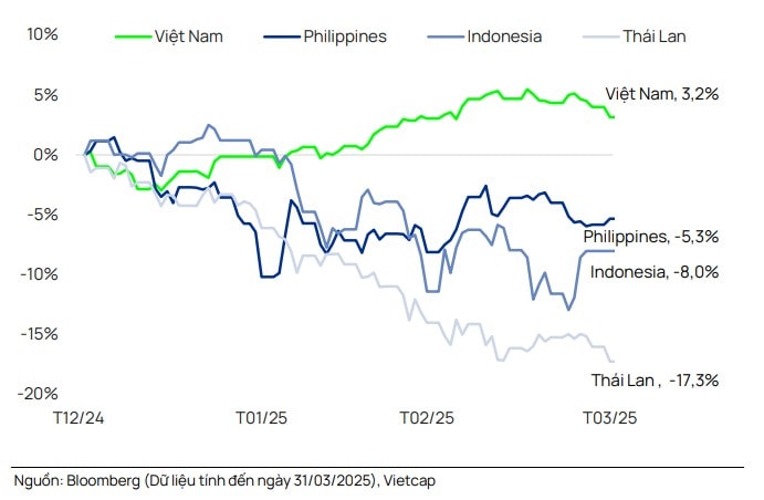 Thị trường chứng khoán trước khi bước vào phiên "chảo lửa" bất ngờ vì tin thuế quan Mỹ, đã khép lại một tháng 3 và quý I/2025 nhiều biến động.