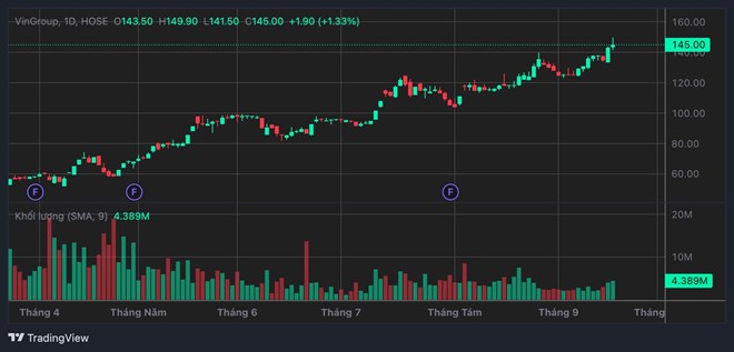 Tính từ đáy hồi giữa tháng 11, cổ phiếu VIC đã tăng hơn 34% thị giá tương ứng giá trị vốn hóa thị trường có thêm gần 70.000 tỷ đồng sau một tháng, đạt 272.000 tỷ đồng (~11,5 tỷ USD).