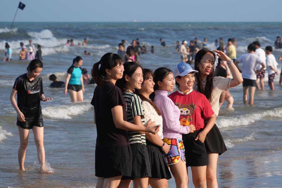 | Du khách check-in trên bãi tắm ở Bà Rịa - Vũng Tàu. Ảnh: Thành An |