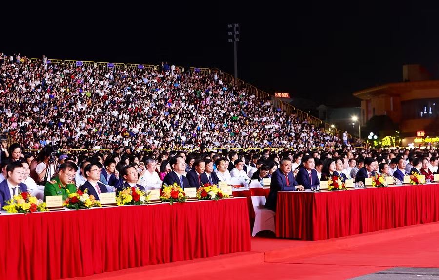 Ngay sau phần nghi lễ là chương trình nghệ thuật đặc biệt với chủ đề “Tinh hoa di sản – Ngàn năm tỏa rạng”, được dàn dựng công phu, kết hợp hài hòa giữa truyền thống và hiện đại.