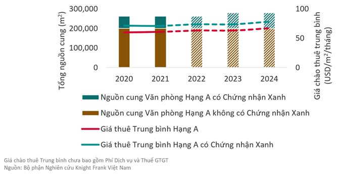 Chủ đầu tư Việt Nam có xu hướng chuộng chứng nhận LEED và Green Mark cho các tòa nhà văn phòng Hạng A và B. Riêng tại Thành phố Hồ Chí Minh, đã có bảy tòa nhà đạt chứng nhận LEED và hai tòa nhà đạt chứng nhận Green Mark với nhiều cấp độ đánh giá đa dạng, trong khi Hà Nội chỉ có ba tòa nhà đạt chuẩn LEED. Cả Tp.HCM và Hà Nội vẫn còn cách khá xa so với Bangkok, nơi có tới 25 tòa nhà văn phòng được chứng nhận LEED với nhiều xếp hạng khác nhau cùng với 5 tòa nhà được TREES (Xếp hạng Năng lượng và Bền vững Môi trường của Thái Lan) công nhận.