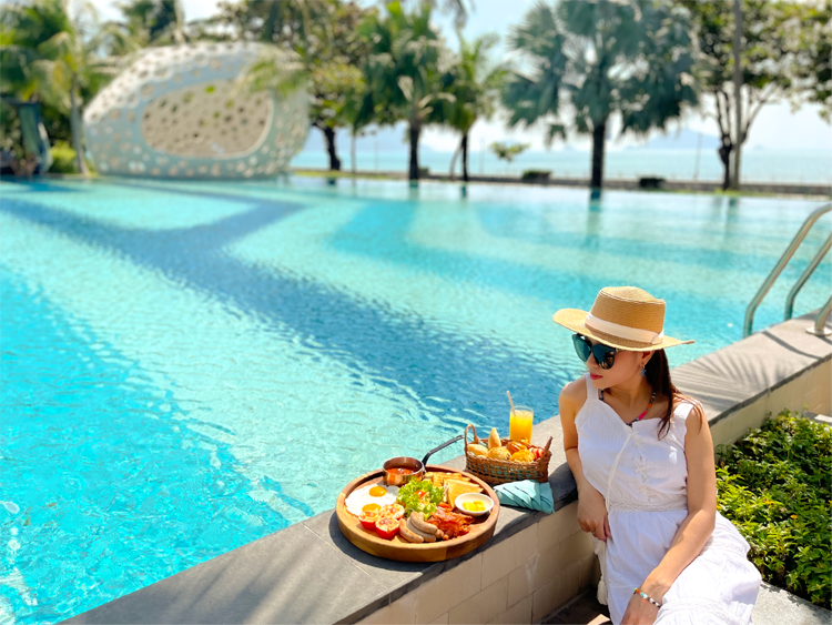 | Thưởng thức bữa sáng nhàn nhã tại hồ bơi hướng ra đại dương bao la (Ảnh: The Secret Côn Đảo) |