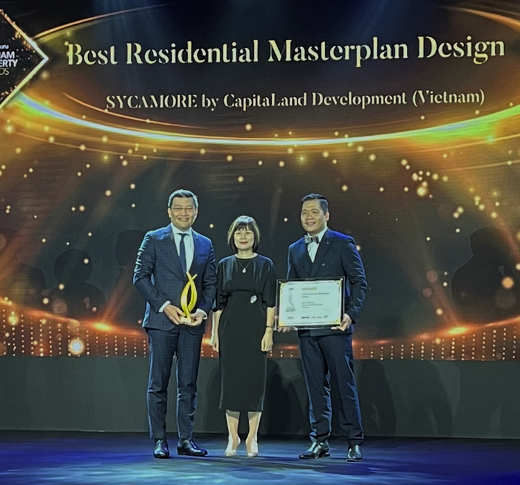 | Đại diện từ CLD nhận giải thưởng “Dự án nhà ở xuất sắc” tại Việt Nam cho Sycamore, dự án nhà ở quy mô lớn đầu tiên của Tập đoàn tại Việt Nam |
