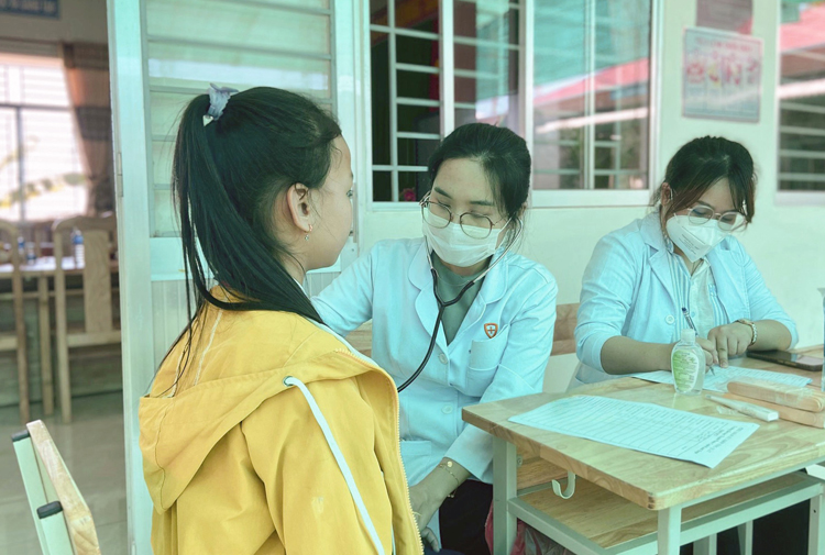 | Hoạt động thăm khám sức khỏe vào cuối chương trình dinh dưỡng học đường nhằm theo dõi sức khỏe và sự phát triển của trẻ |