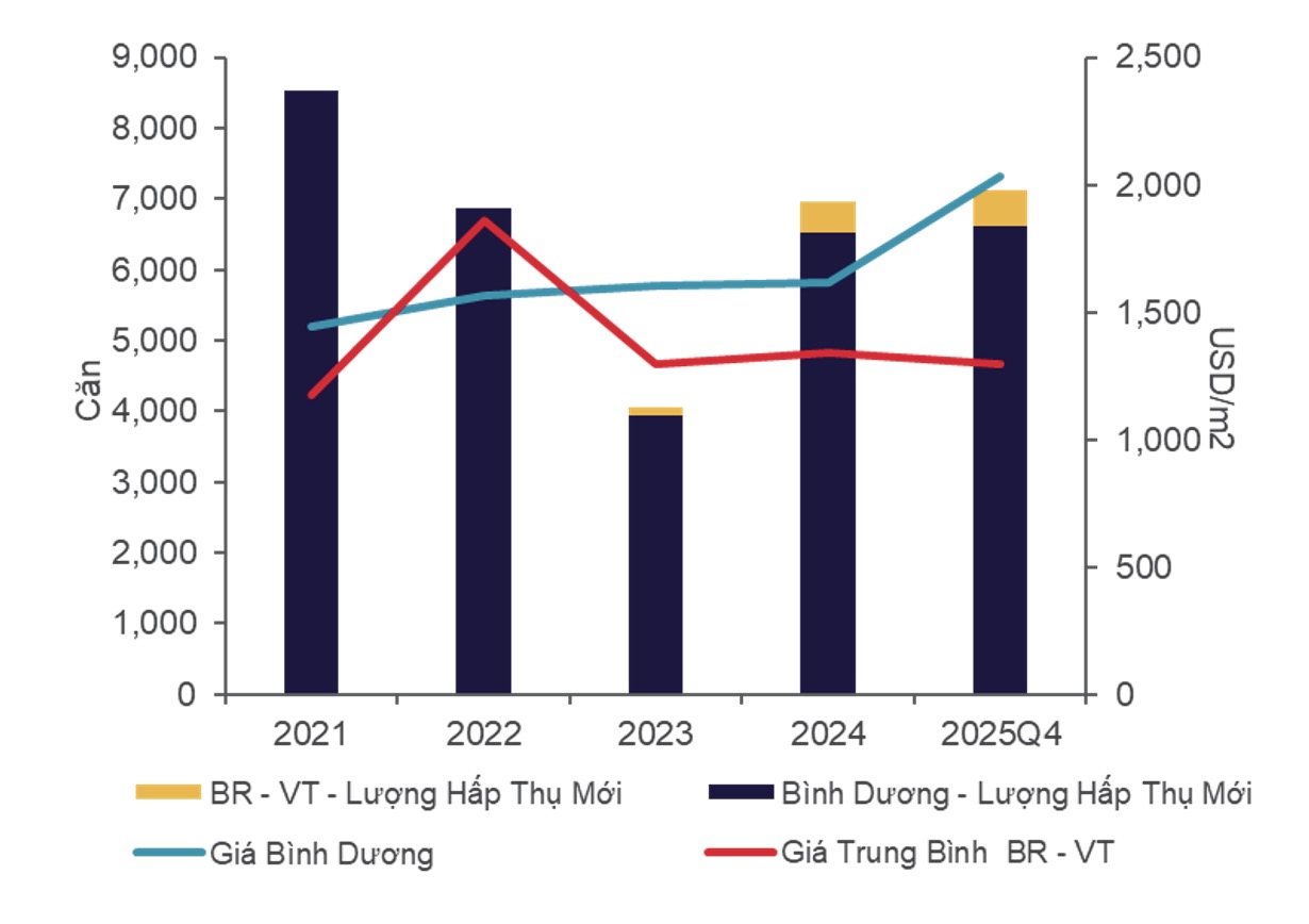 Triển vọng năm 2026 được dự báo tiếp tục nghiêng về khu vực vệ tinh khi nguồn cung mới dự kiến tăng mạnh. Khu vực Bình Dương (cũ) có thể bổ sung hơn 20.000 căn hộ trong năm tới, trong khi Bà Rịa – Vũng Tàu (cũ) dự kiến cung cấp gần 11.000 căn.