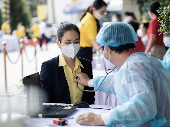 Theo đó, cán bộ nhân viên, khách hàng, đối tác, tình nguyện viên tham gia đều được sàng lọc dịch tễ (kiểm tra thân nhiệt, thẻ xanh Covid – đã tiêm đủ 2 mũi, sát khuẩn, khẩu trang), thực hiện giãn cách tối thiểu 2m, tổ chức ngoài trời với không gian thoáng mát,…Các tình nguyện viên cũng được trang bị găng tay, kính chống giọt bắn để đảm bảo an toàn sức khỏe.