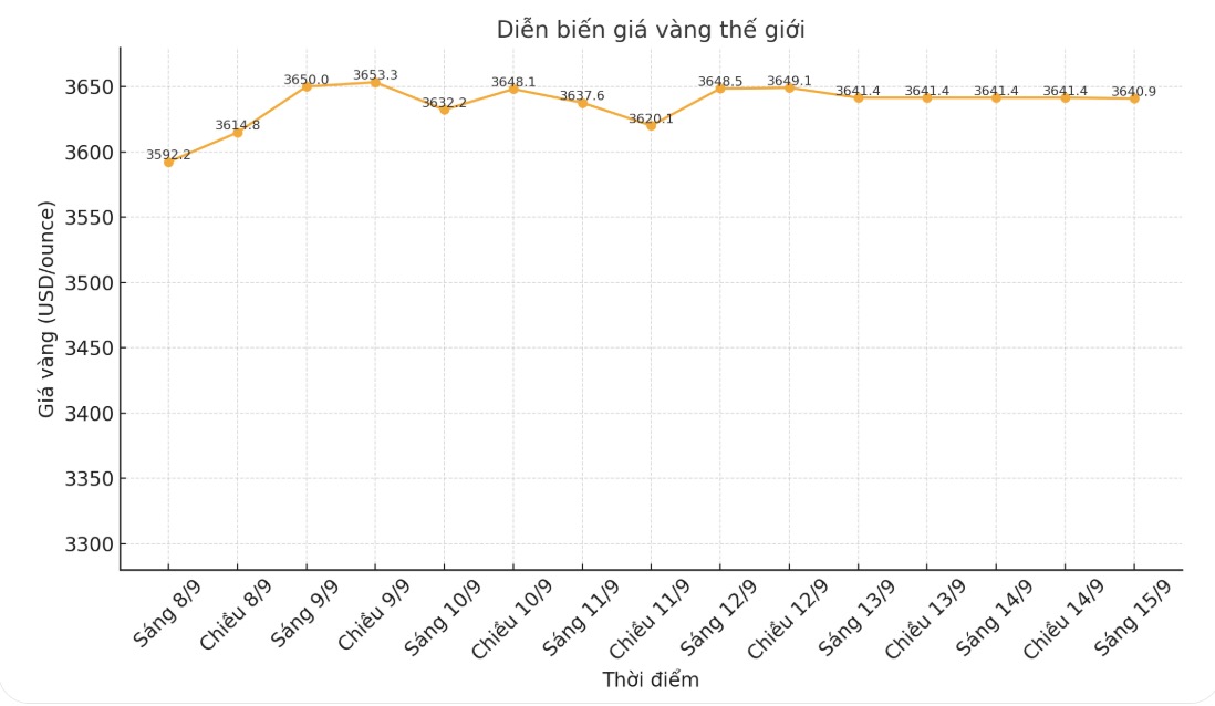 | Diễn biến giá vàng thế giới những phiên giao dịch gần đây. Biểu đồ: Khương Duy |