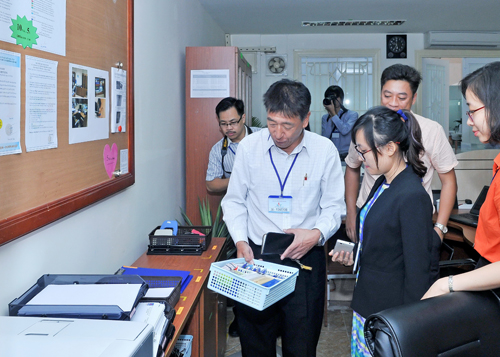 Ngày 17/10 vừa qua, sau hơn 4 tháng triển khai chương trình 5S, đoàn chuyên gia Nhật Bản - Japan International Cooperation Agency JACA và các cán bộ của Viện Năng suất Việt Nam - chi nhánh TP HCM đã có đợt kiểm tra. Đoàn rất tâm đắc với phát biểu của ông Triệu Quốc Tuấn - Giám đốc Công ty KĐN: "Thực hiện 5S không thể chỉ có hô hào hình thức, mà là sự bền bì, kiên trì từng ngày, ở từng công việc nhỏ, từng vị trí công tác".