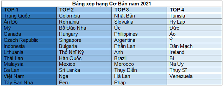 Ở nhóm Chi phí – (60% chi phí và 20% cho điều kiện kinh doanh và 20% rủi ro) – sự thống trị của châu Á ngày càng tăng, với Thái Lan, Philippines và Việt Nam là các nước Đông Nam Á thuộc top đầu.