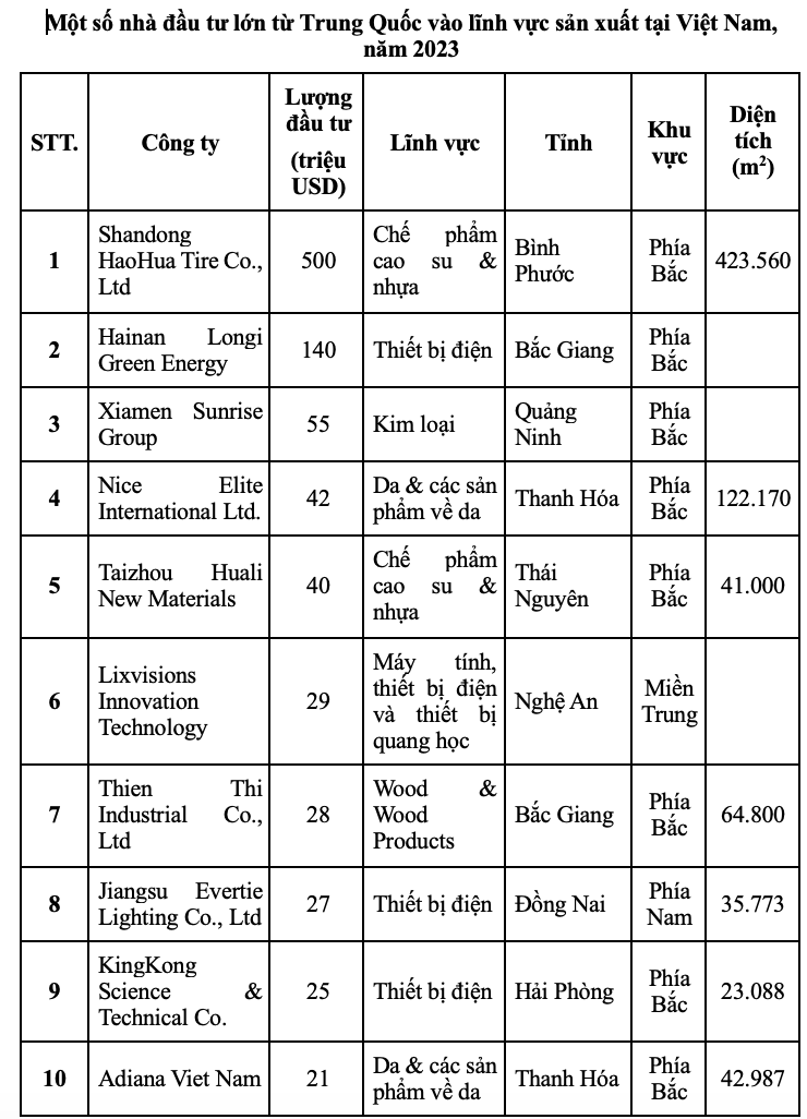 Cũng theo Bộ Kế hoạch và Đầu tư, trong 9 tháng đầu năm 2023, đã có 102 quốc gia và vùng lãnh thổ đầu tư vào Việt Nam. Trong đó, Trung Quốc chiếm 14,5% tổng lượng vốn đầu tư, tăng 94,9% theo năm.